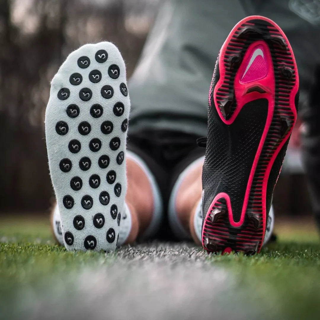 Maximera din prestation med NordicTrainings greppstrumpor, skapade för att ge överlägset stöd och ökad smidighet på planen och hemma i samband med vår fotbollsmatta. Varje par har en speciell sula som ger bättre grepp och stabilitet, vilket gör att du kan röra dig med större precision och kontroll.